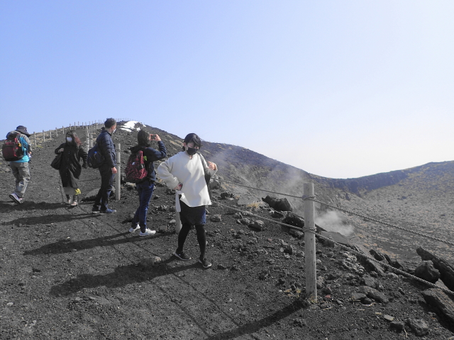 若干、降雪が残るお鉢巡りでしたが、下から上がる噴気も間近で見たし。。。