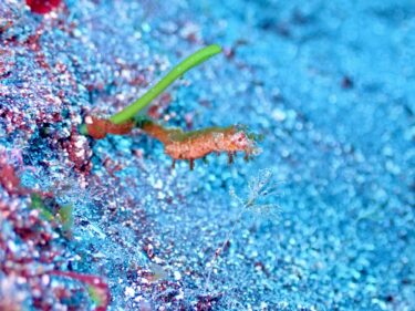 アオリイカも2ペアくらいが産卵にやってきていました!しかし今日は透明度が悪すぎて、遠目からはほとんど見えない為、近づけばアオリイカは離れてしまい、まったく撮らせてもらえませんでした(><)代わりに、水底に注目すると大潮の流れに乗ったプランクトンを食べる為、チンアナゴ達があちらこちらで元気に首を伸ばしていました。最近お気に入りの2匹を動画で撮ったので、こちらもどうぞ!