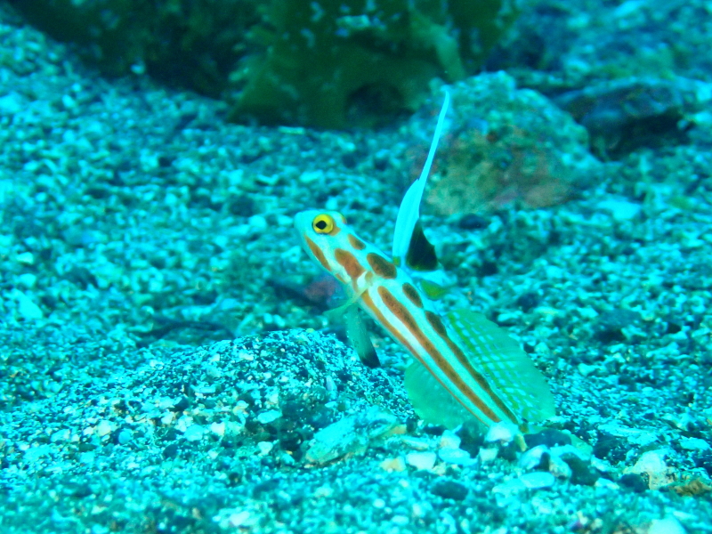 今年の夏はしばらくヤシャハゼが見れていなかったので、今日は中央の砂地エリアをウロウロと。すると、まずはヒレナガネジリンボウがペア!で見つかりました。が、水中が暗かったせいもあり、まったく寄れずに巣穴に逃げられてしまいました。他を探すと、居ましたヤシャハゼ!しかも結構寄っても隠れずにとても良い子でした。まあもう少しだけ水深が浅いと嬉しいのですが・・・仕方ありませんね。