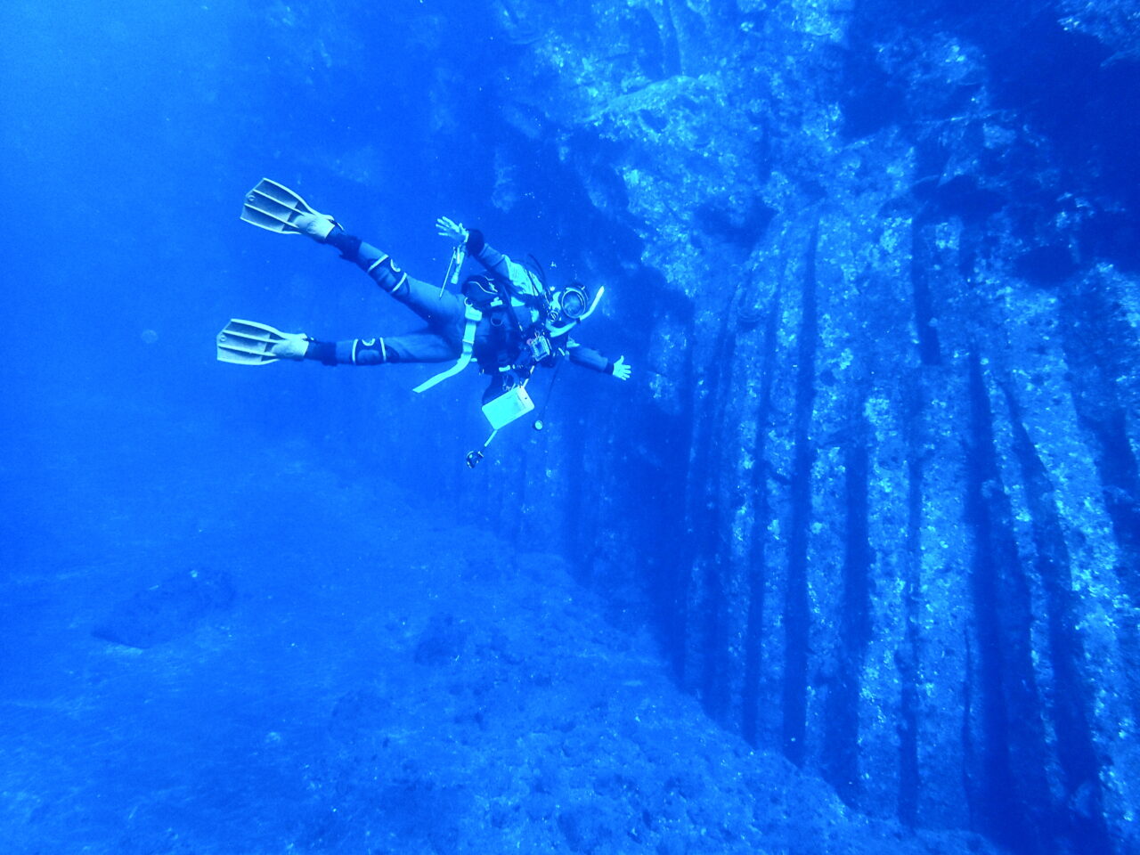 あまりにも透明度が良くて気持ちよかったので、トウシキ名物「水中柱状節理の壁!」で記念ショット!