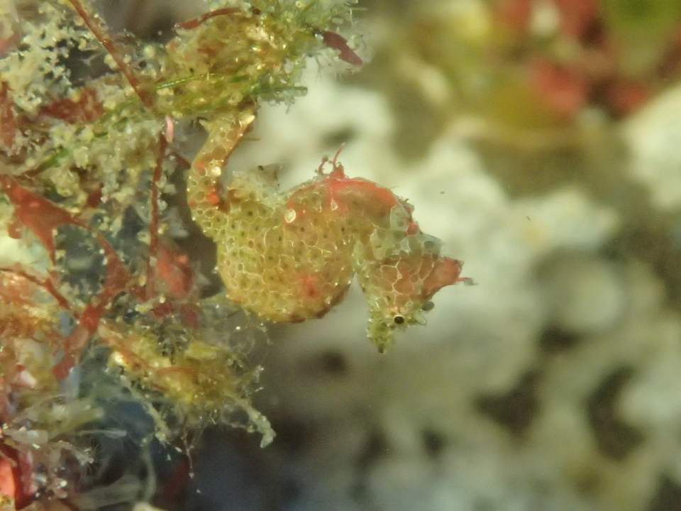 まあこんな日は早々に浅場に戻りまして・・・壁をじっくり散策。すると、私にしては驚きの小さな生き物が目に留まりました。体長約1cmのハチジョウダツです!一瞬でも目を離すと見失ってしまう程の擬態っぷりですが、今年は個体数多いのかな?
