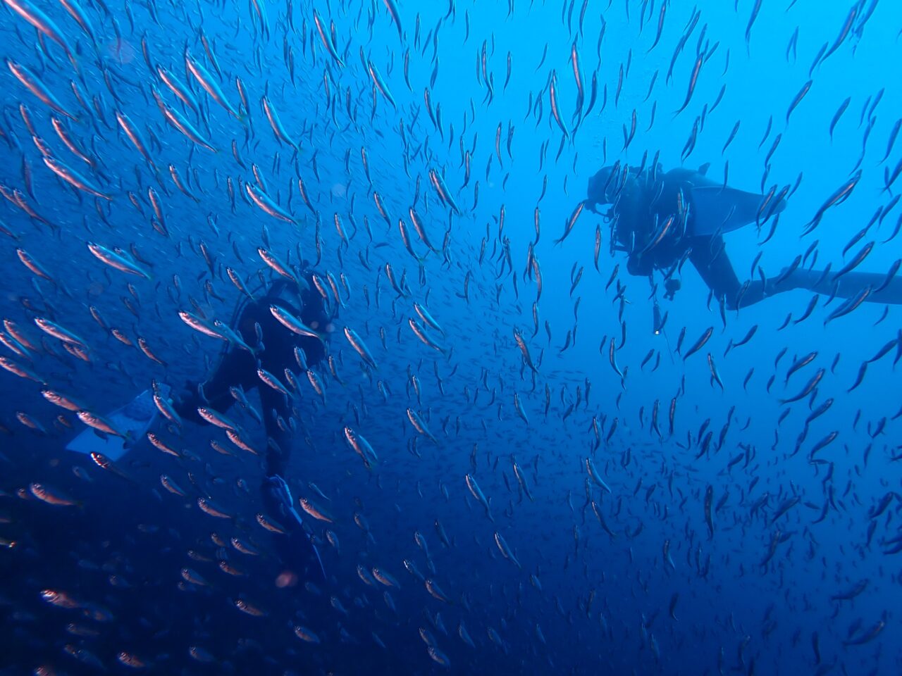 マイワシやタカベ、カタクチイワシやその他の稚魚が混ざって泳いでいました🐟🐟🐟