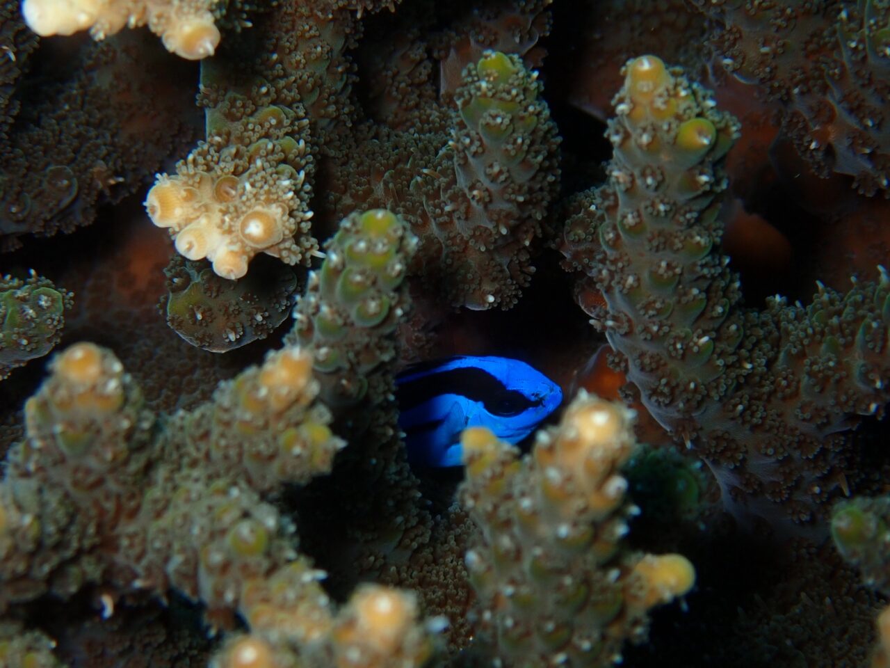 まだ、尾ヒレは透明でずっとサンゴの中に隠れていました🫰