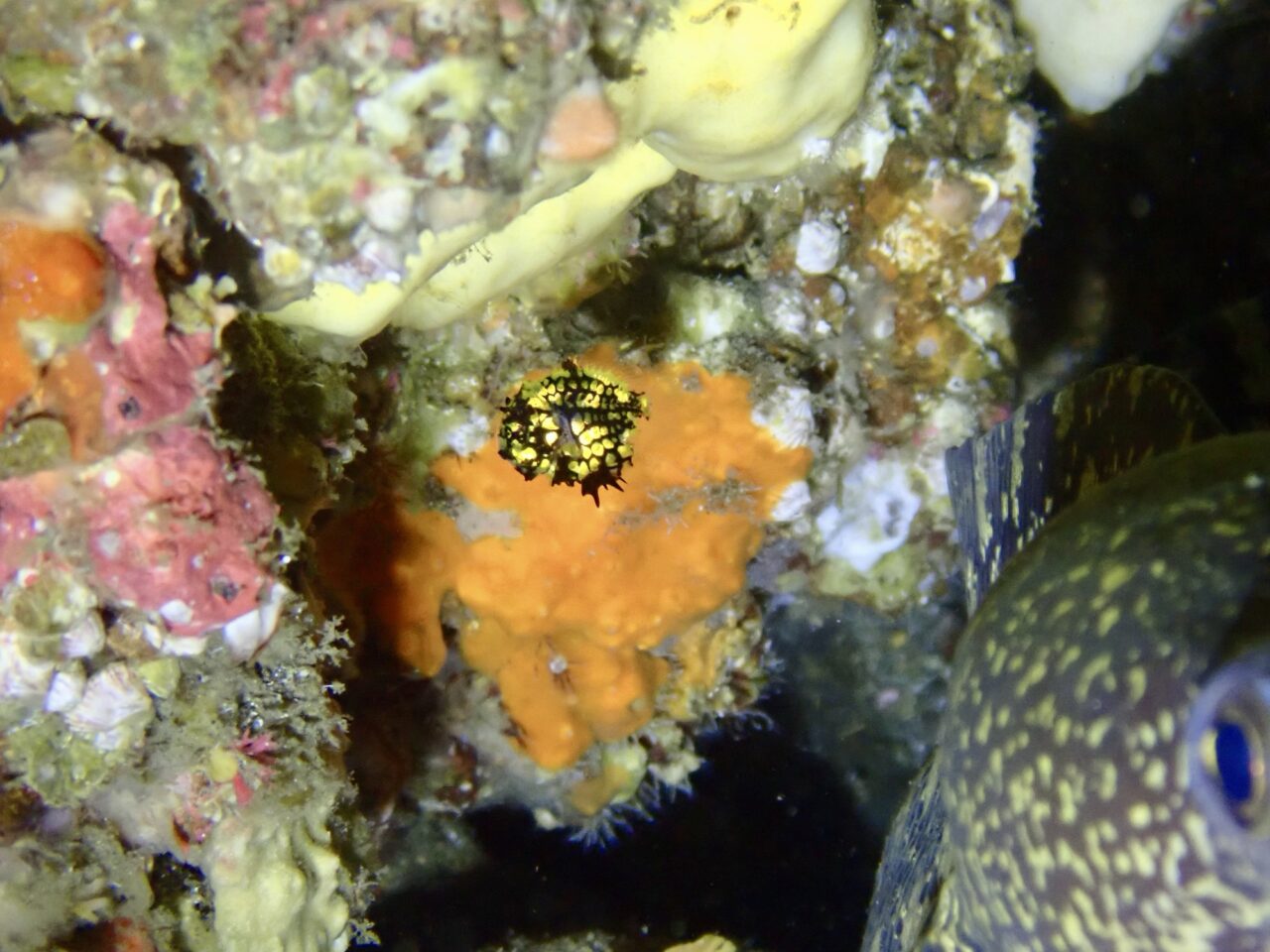 そして、近くには一円玉より小さいマツカサウオの幼魚の姿が!!