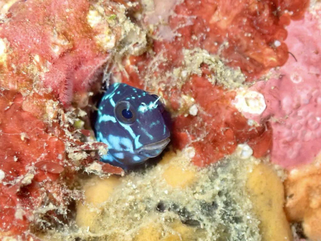 そして、顔の青いラインがタトゥーみたいでかっこいいニラミギンポにも出会うことが出来ました!
