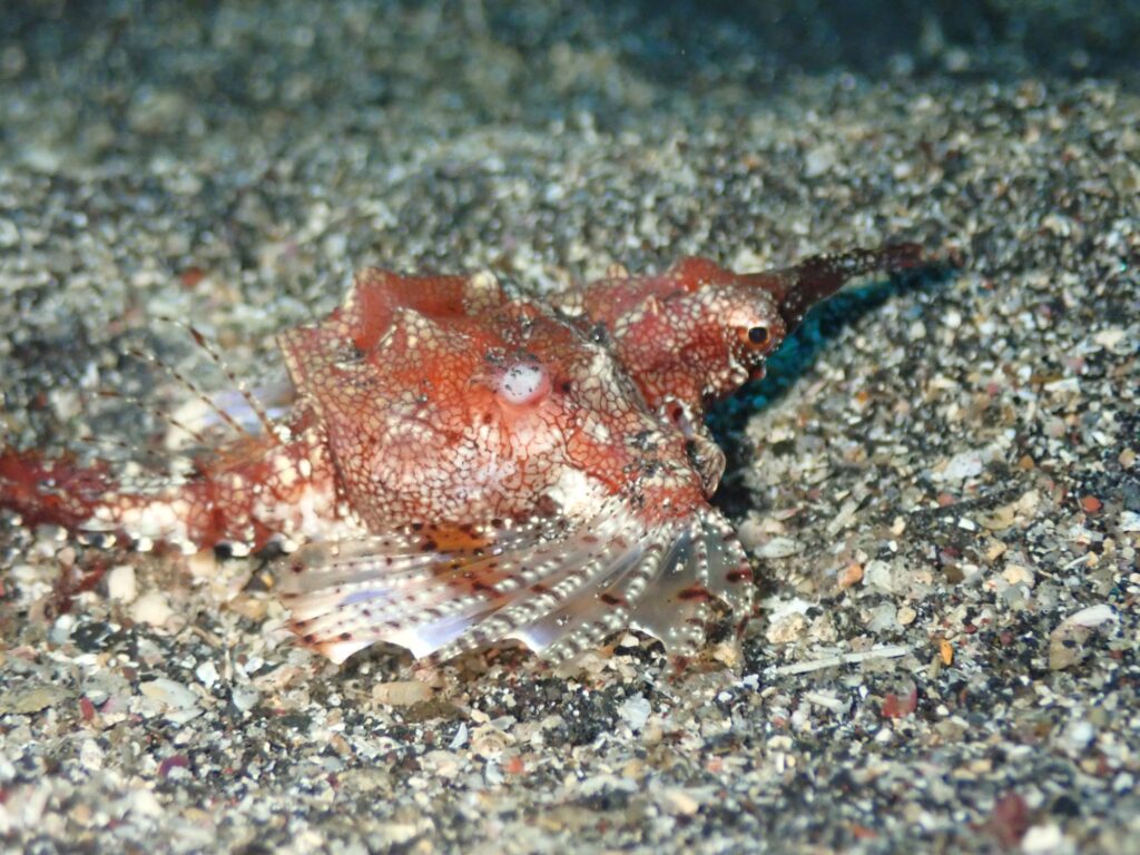 500円玉より少し大きいサイズのマツカサウオ幼魚を撮影!