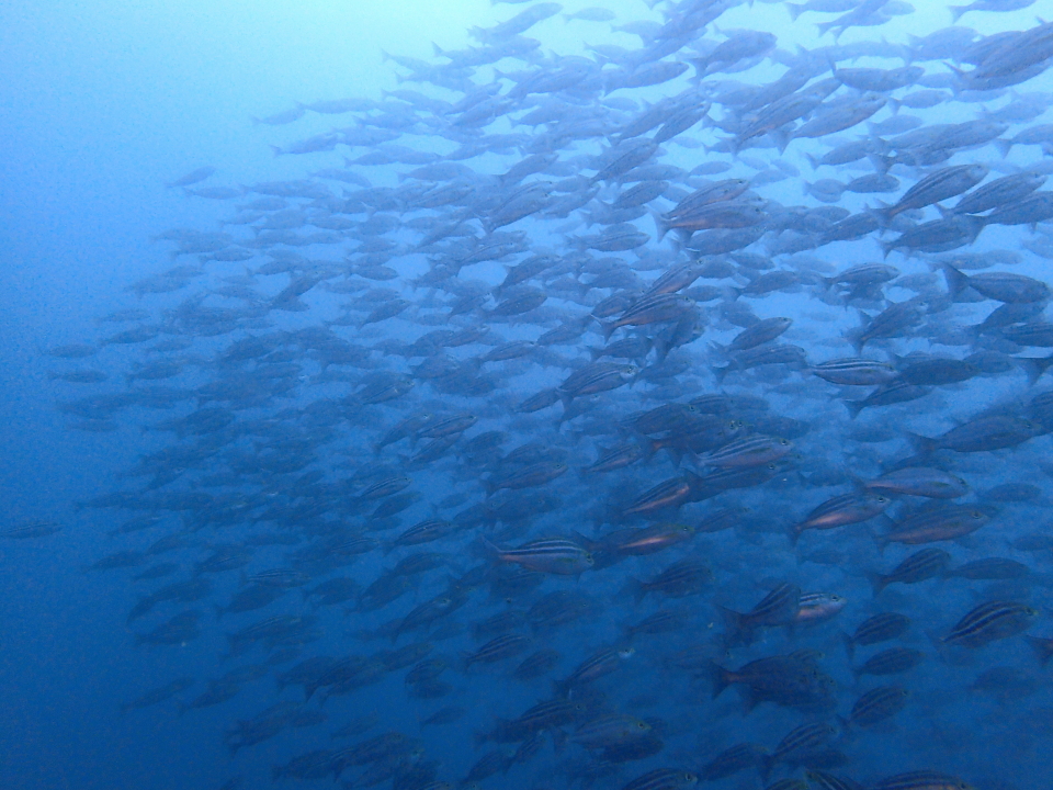 中層ではイサキの群れ!が圧巻です。透明度さえ良ければ最高なのですが。。。