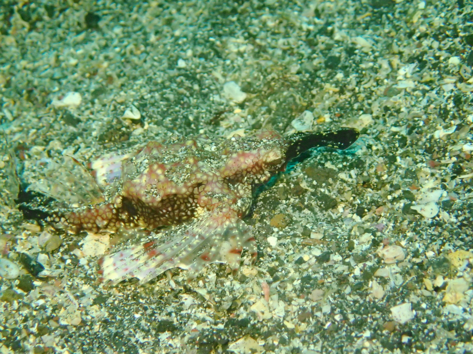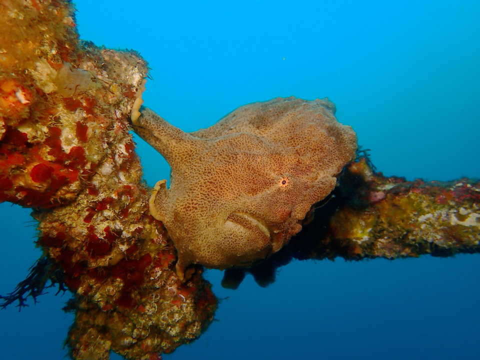 漁礁の巨大オオモンカエルアンコウは相変わらずの定位置。