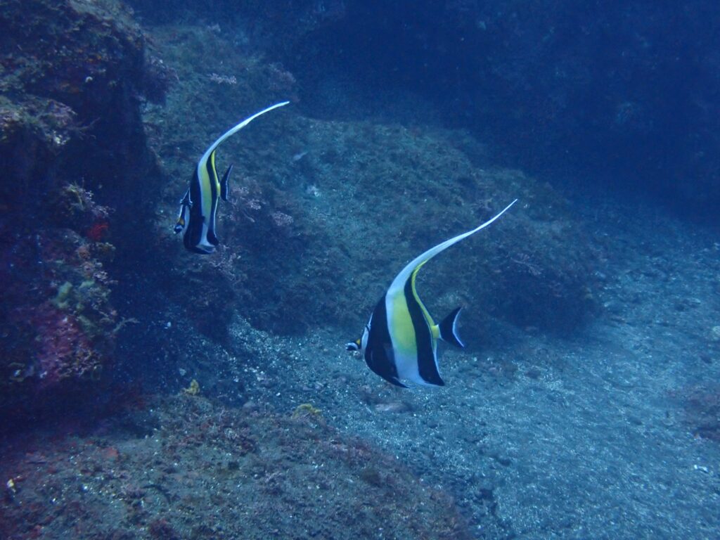 エントリーしてすぐガイドロープよりも手前にツバメウオの幼魚のすがたが!