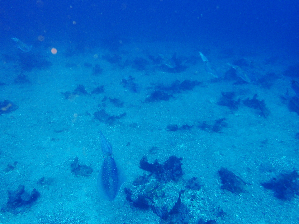 Kasuyaです。朝から快晴!午前中は風も弱くポカポカ陽気に。ショップ御一行様を午前便の港へ送り届けた後、リサーチでユーキと一緒に1本だけ潜ってきました。