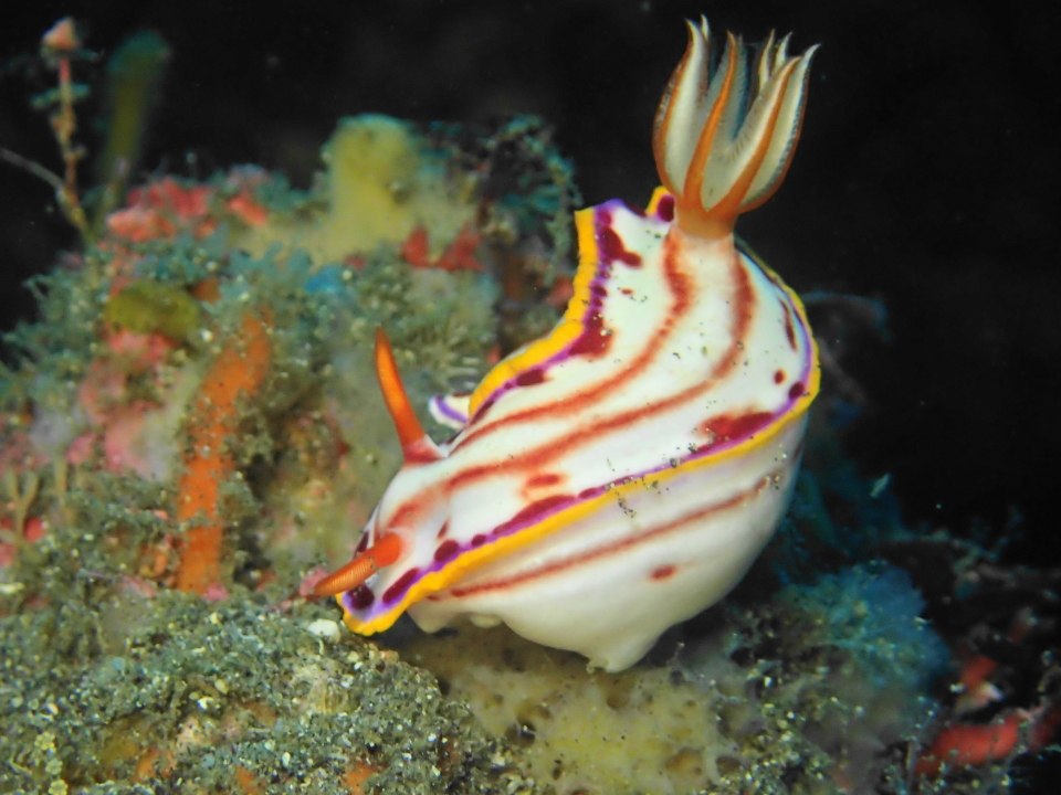 カンナツノザヤウミウシ大小合わせて全部で4個体くらい目に留まりました。