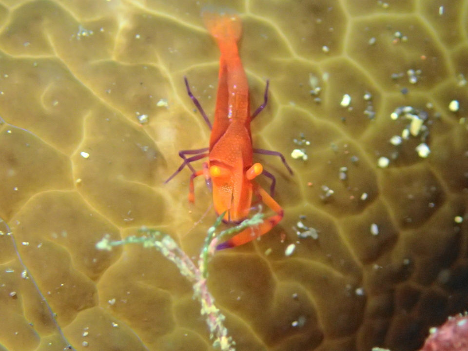イボベッコウタマガイの裏を見ると、右の鋏足が無いウミウシカクレエビを発見。色も渋めです。