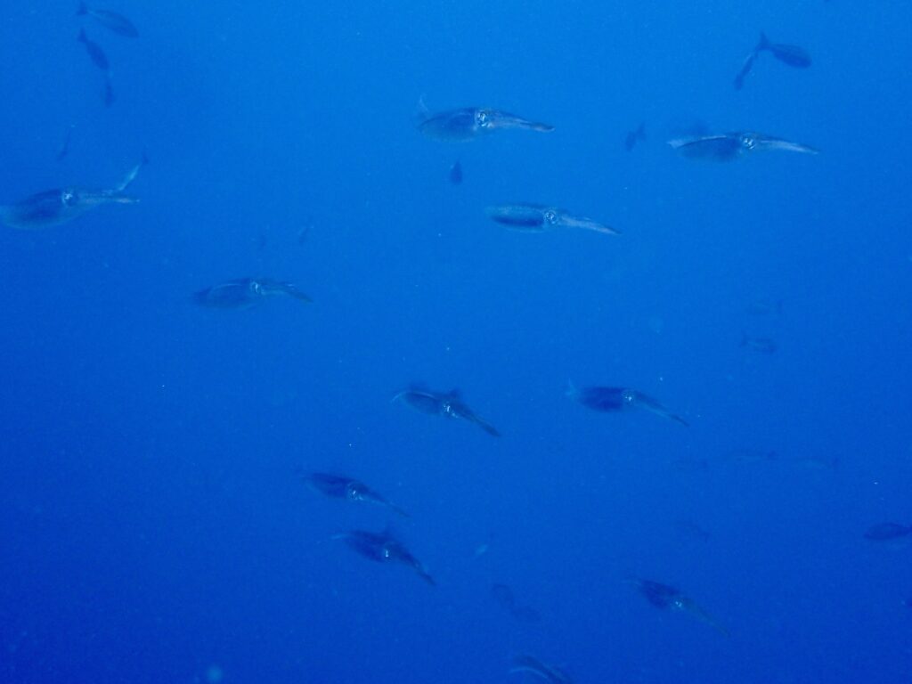 エントリーしてスグの中層にはアオリイカが沢山!トータルで50を超えるアオリイカがスズメダイに混じって泳いでいました🦑