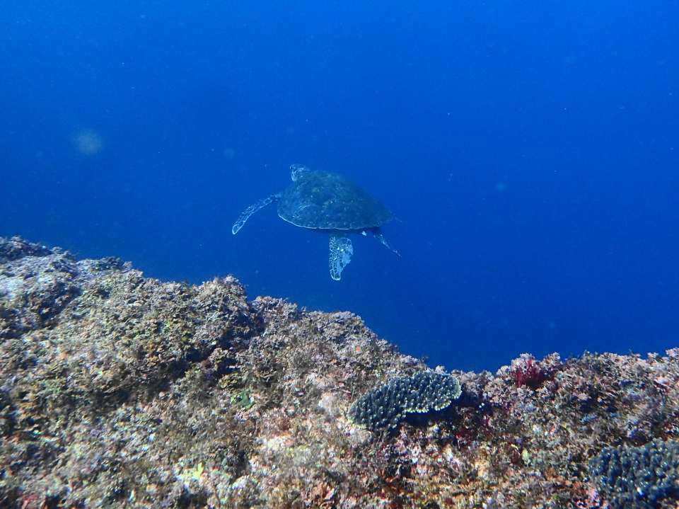 浅場に戻るとアオウミガメが!最近この子よく見かけます。