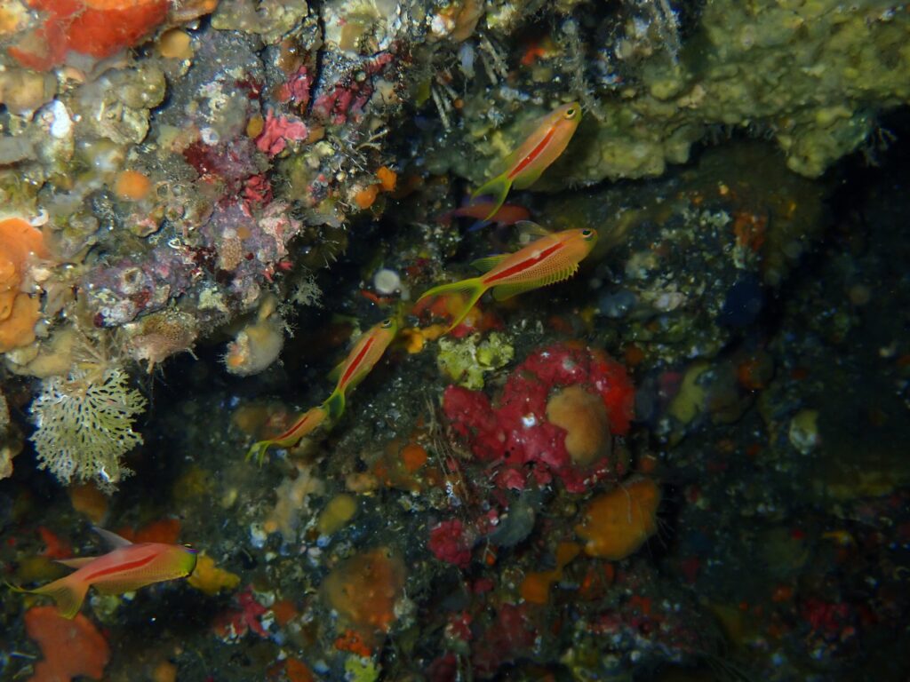 水深を下げていくとスジハナダイが幼魚から成魚まで見ることができます!