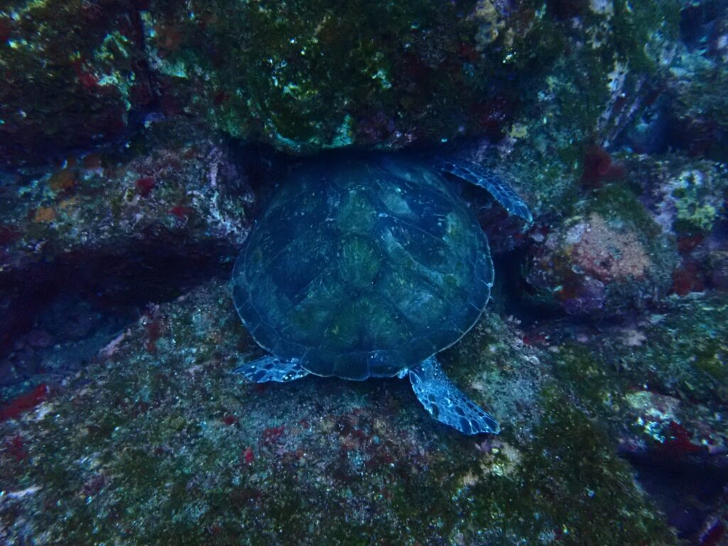 そして、アオウミガメが「頭隠して尻隠さず」状態で、すやすやしてました😊