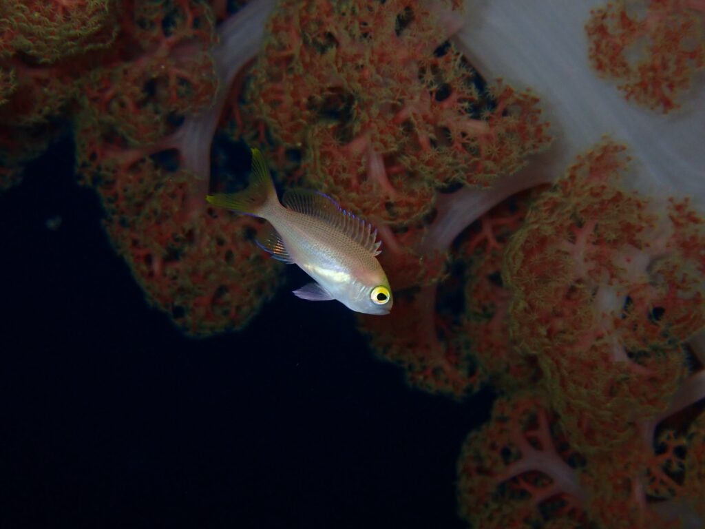 キンギョハナダイ、カシワハナダイ、ケラマハナダイ、スミレナガハナダイ、コガネスズメダイ、ヒマワリスズメダイ、シロボシスズメダイなど沢山のスズメダイがキラキラと泳いでいました😊
