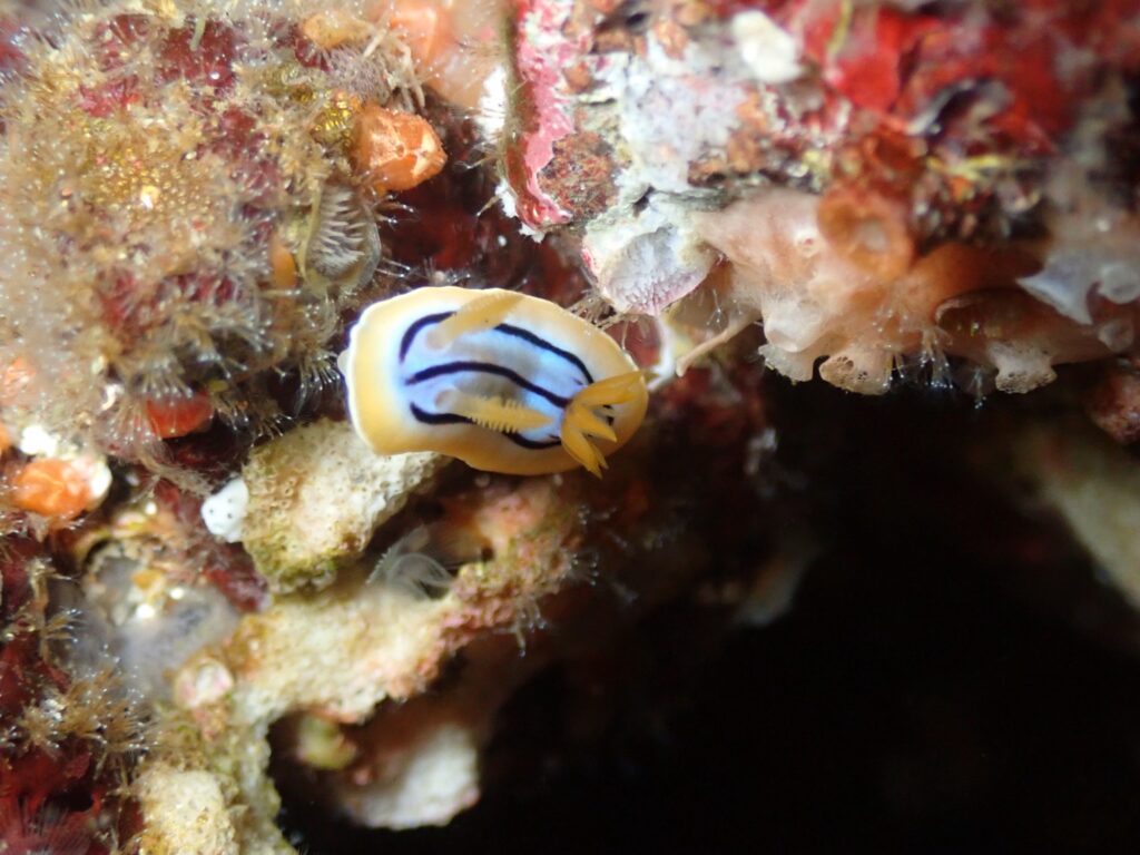 近くには綺麗な模様の入り方をしているコールマンウミウシの姿も!