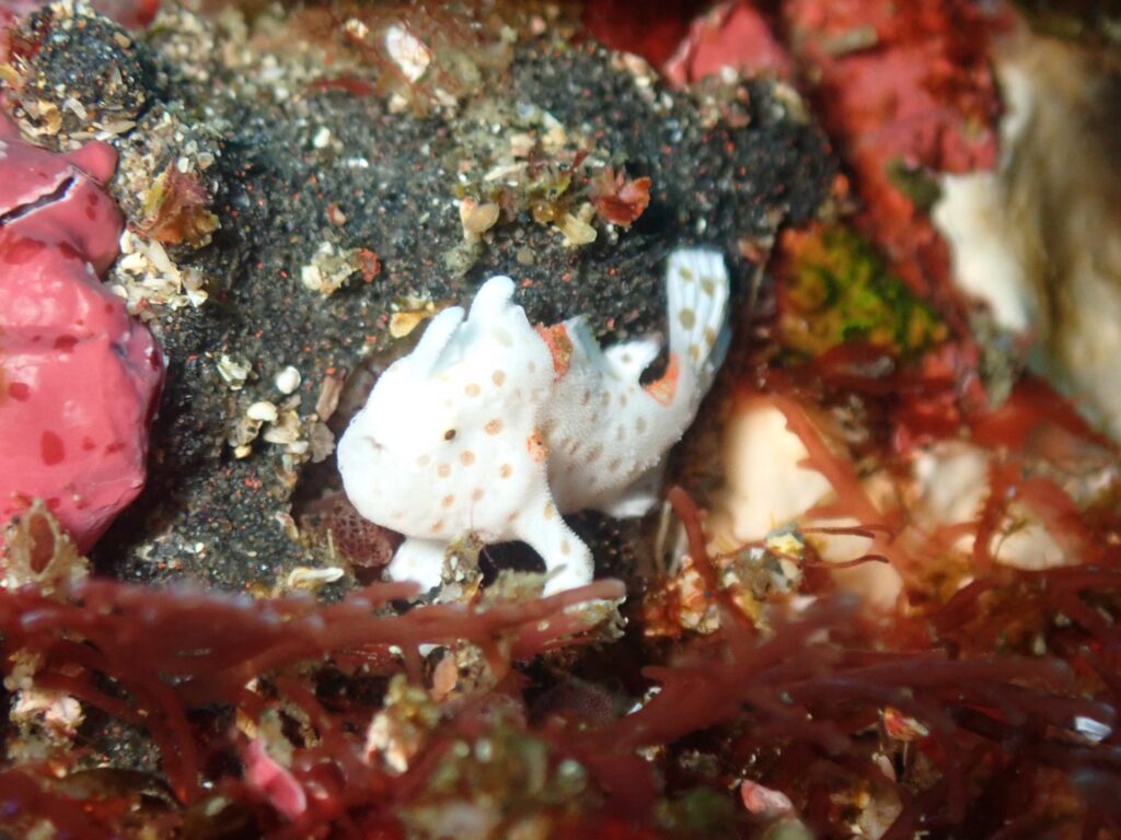 そして、海の中で「あとぱぱダイビングサービス」さんに呼ばれるとドット柄のイロカエルアンコウが!