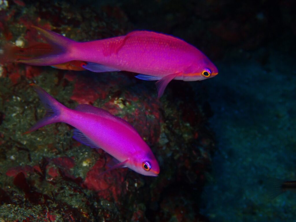 浅場に帰ってくるとハナゴイが数匹で固まっていました!綺麗な色合いな子です!