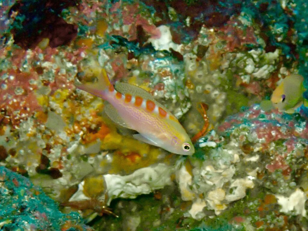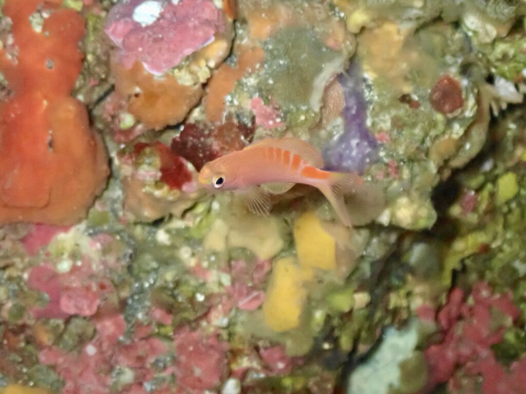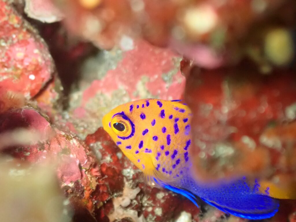 途中岩の隙間にはレンテンヤッコ幼魚が隠れていました!
