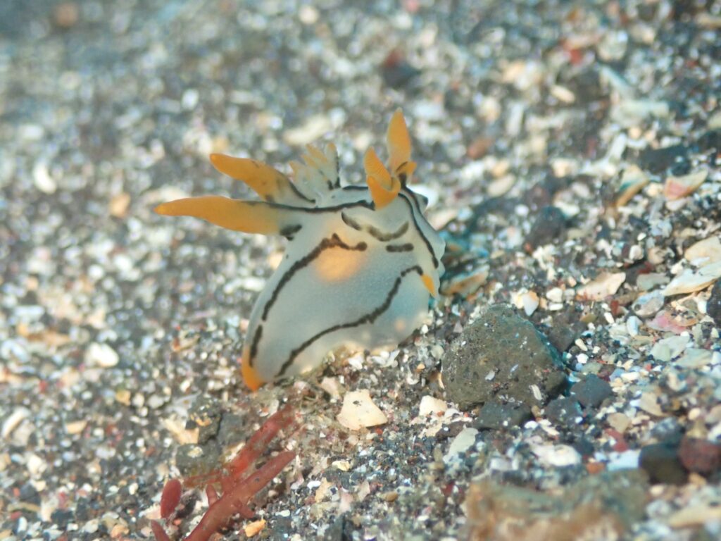 徐々にウミウシが増えてきており、最初に出会ったのはシラユキウミウシ!