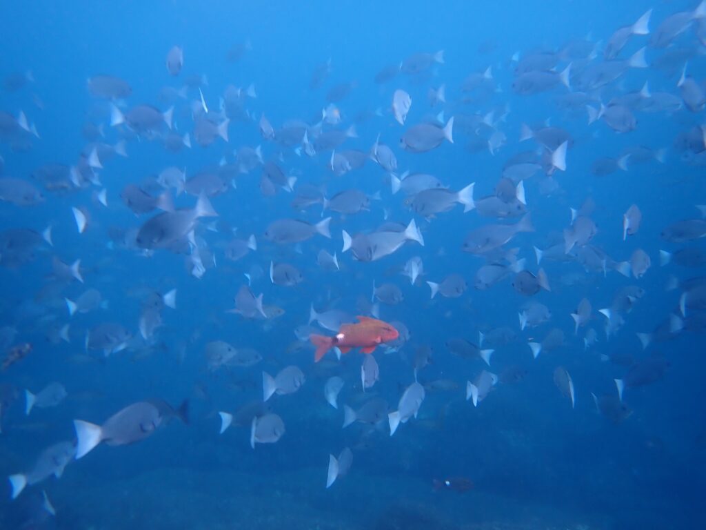 ヨウジウオやオヤビッチャなどの小さい魚たちが私たちの下を忙しなく泳いでて可愛い😍