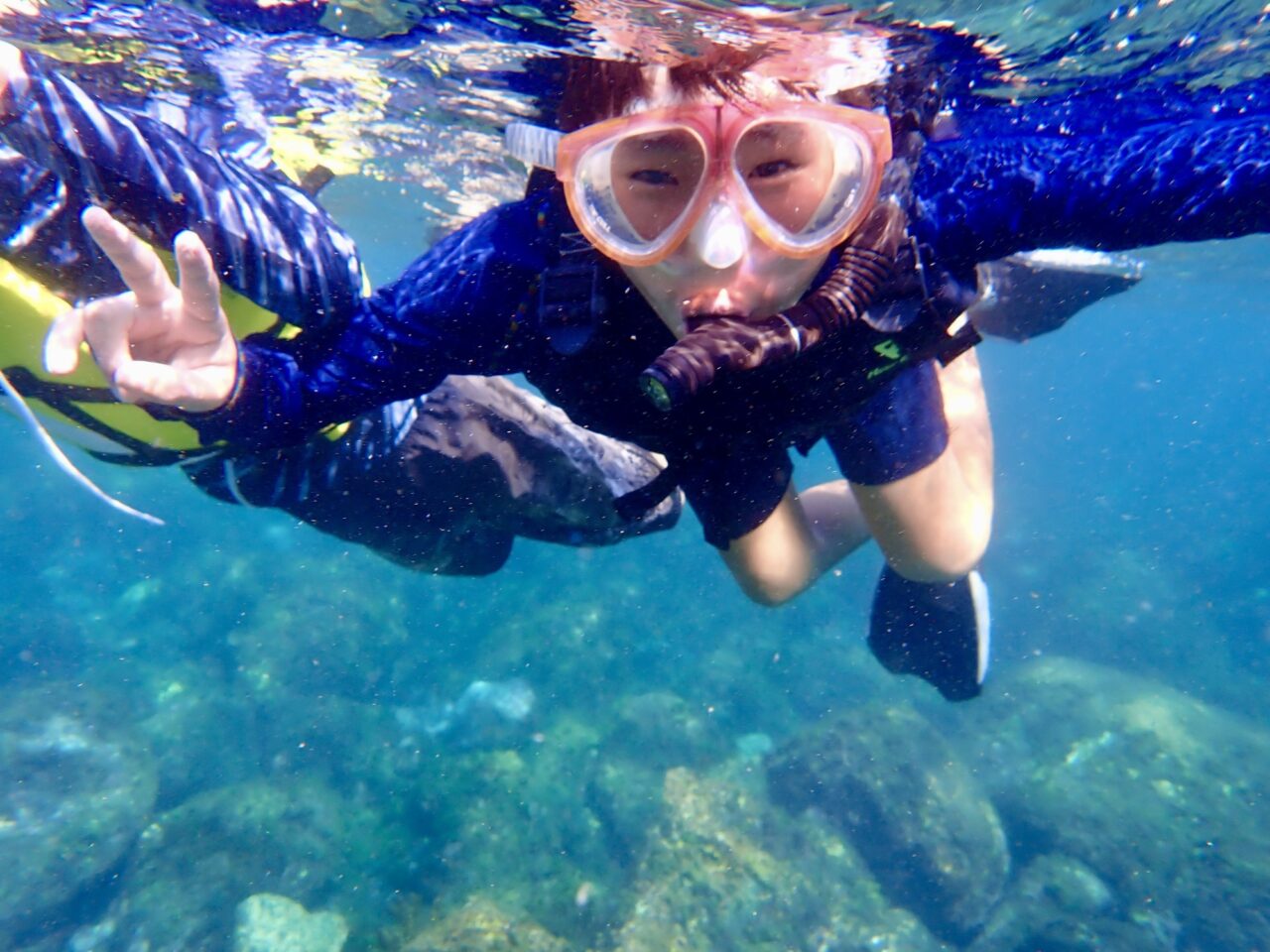 王の浜は浅いところでも海藻を食べにウミガメがやってくるポイントということもあり、みんなでウミガメを探しつつ、シュノーケリングSTART🤿