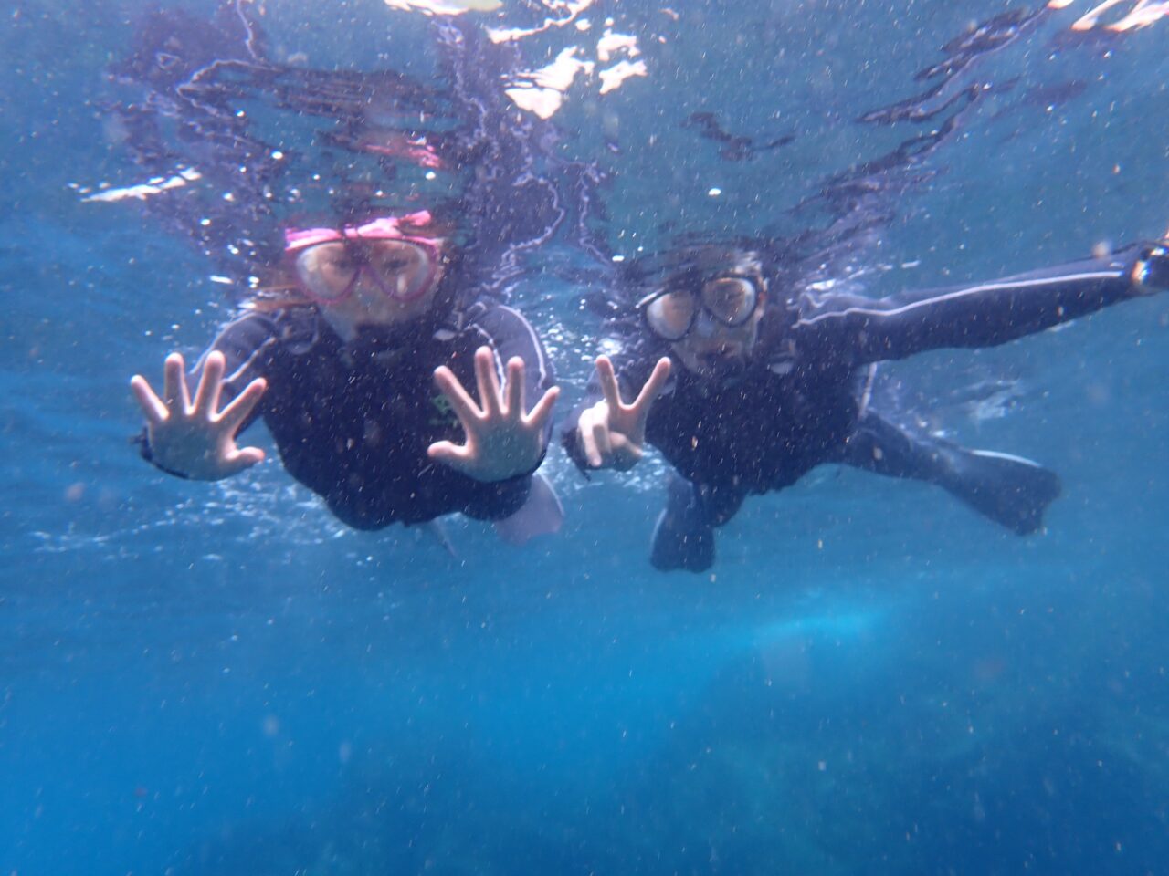 初めてシュノーケルする2人も余裕のピース✌️