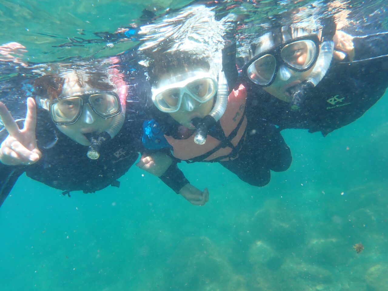 海藻の切れ端がたくさん海の中を舞っている状態ではありましたが、お魚たちが泳いでいる姿が見えるぐらいの透明度はあってよかったです!