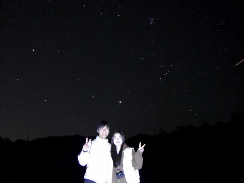 写真掲載OKな二組の記念写真を載せておきますね~東の低空には冬の星座が映っていますよ~!