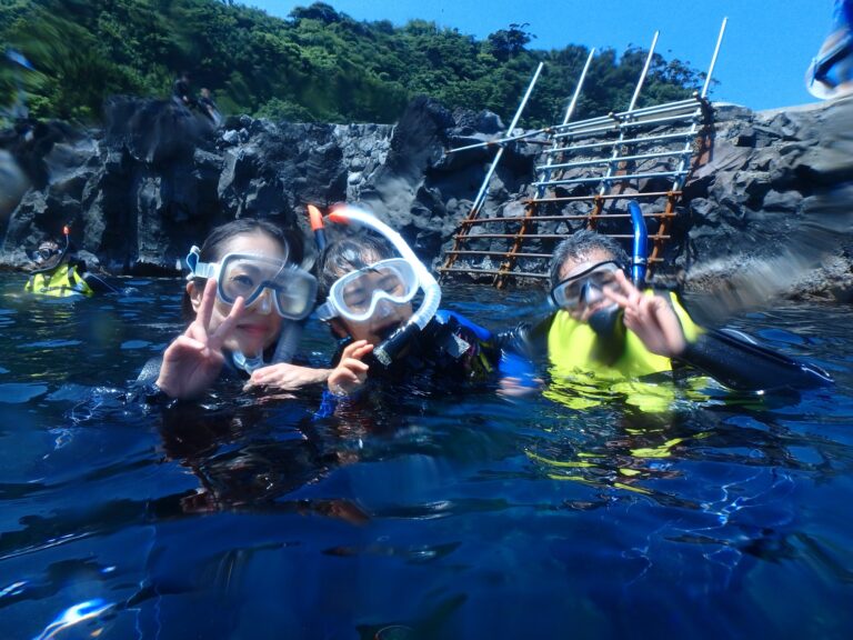 こんにちは!まゆっぺです😉 8月3日(土)の午前は3組の計9名様のシュノーケルツアーを担当しました! 〈秋の浜〉水温 24℃ 透明度 10m 海況 良好 秋の浜はハシゴを使って海に入っていくポイントです🪜 フィンを履いた状態で降りるのは慣れないので少 […]