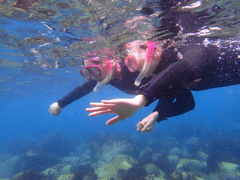 5月2日(火)天気:快晴 <シュノーケリングツアー2組4名> GW4日目の午後からはシュノーケリングのお客様を迎えて、楽しんできました~♪風も穏やかだったので久々に西側のポイント野田浜へ。。。 水温はまだ18℃と冷たかったですが、顔を着けると真っ青で […]