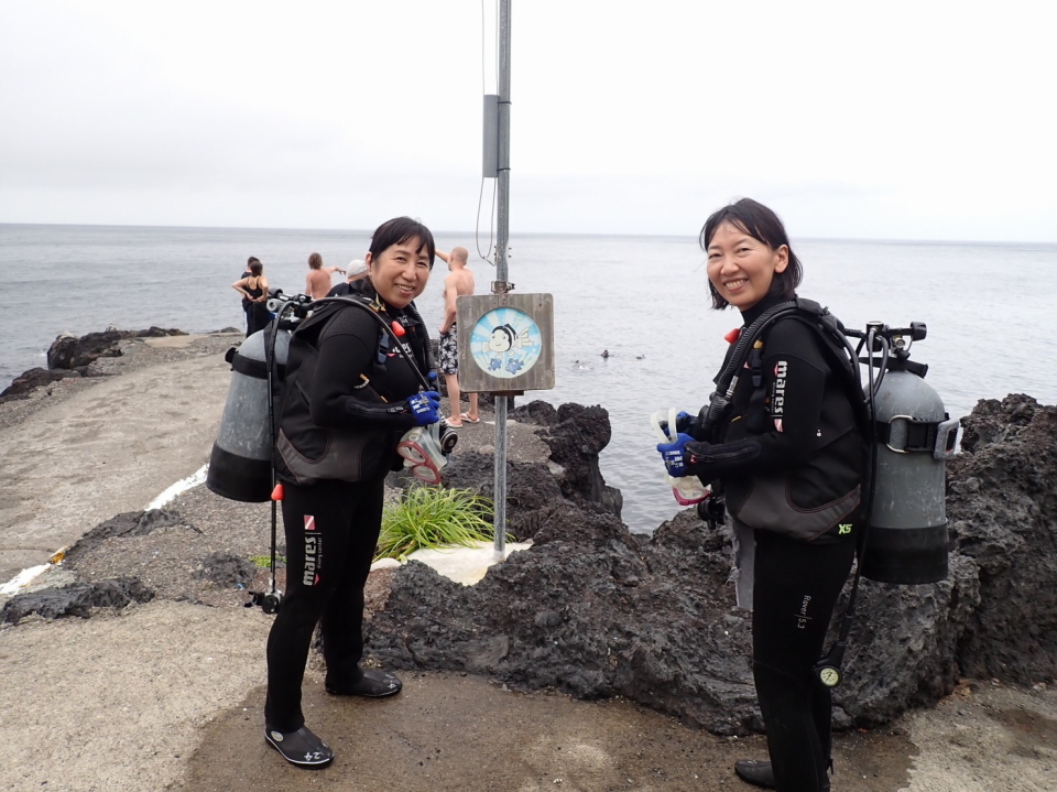 この日は体験ダイビングのお客様も大勢いました。中でも女性お二人ペアのうち1人は去年もいらっしゃれて、2度目のご来店で今回はなんと2日間とも体験ダイビングにチャレンジ♪ちょっと透明度は今一つでしたが、魚は多いので全員が楽しめた様子でした~