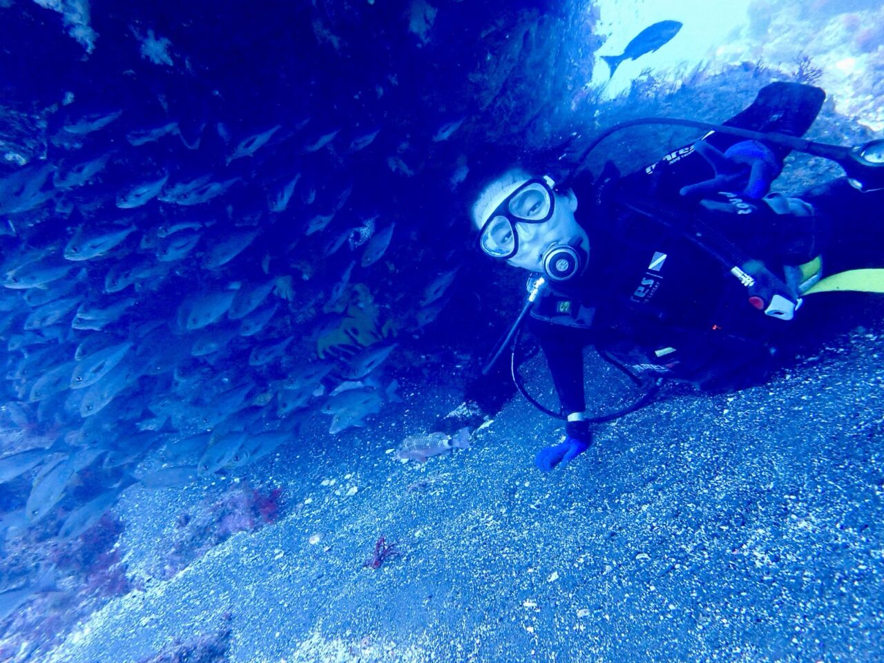 相変わらず溶岩アーチの中はイサキがグッチャリ!ダイバーが入っても逃げることなく、いい感じのショットが撮れました📸