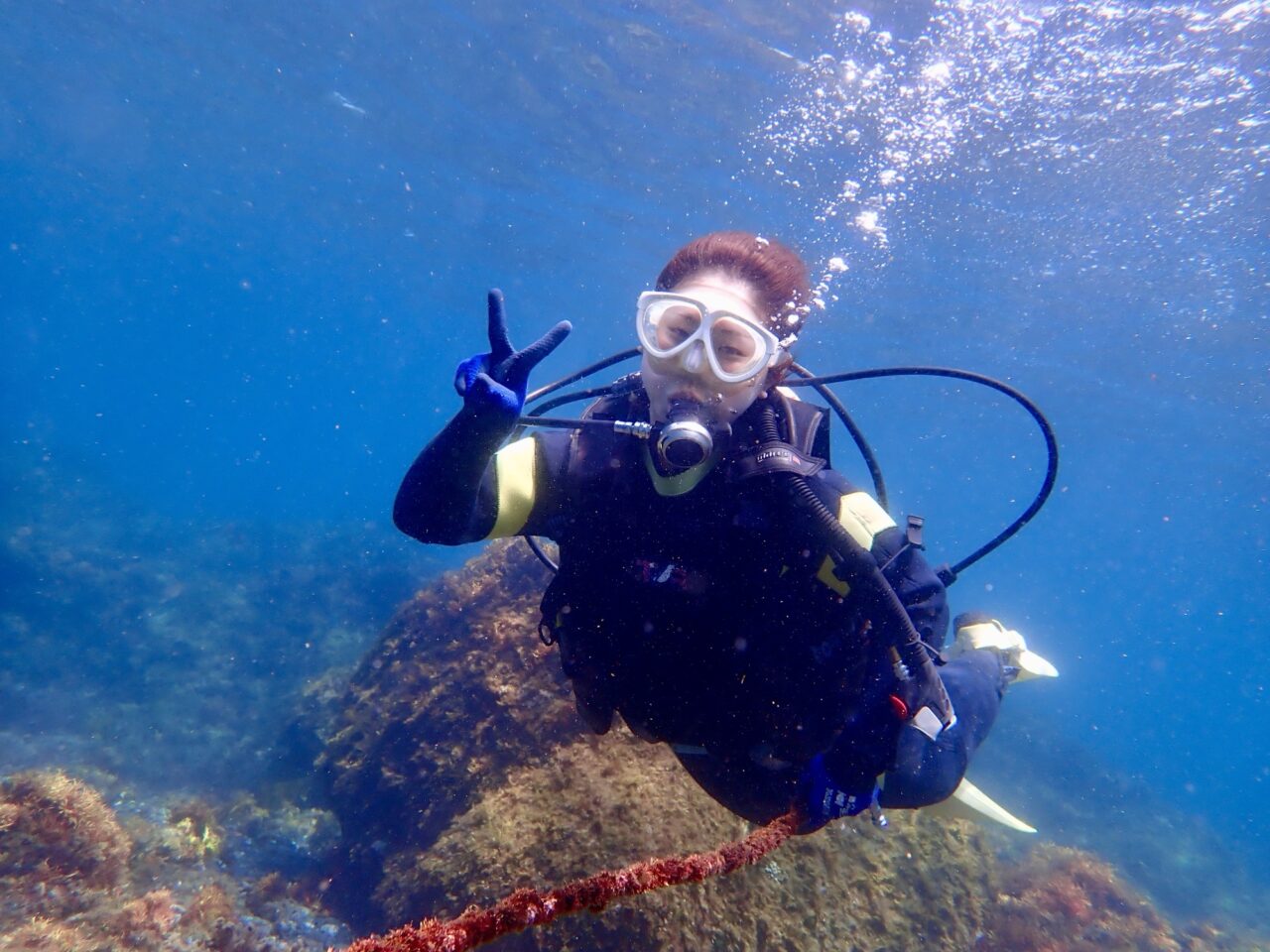 最初は慣れない水中での呼吸にあたふたしましたがすぐに慣れて、海中世界を楽しんでいただきました!