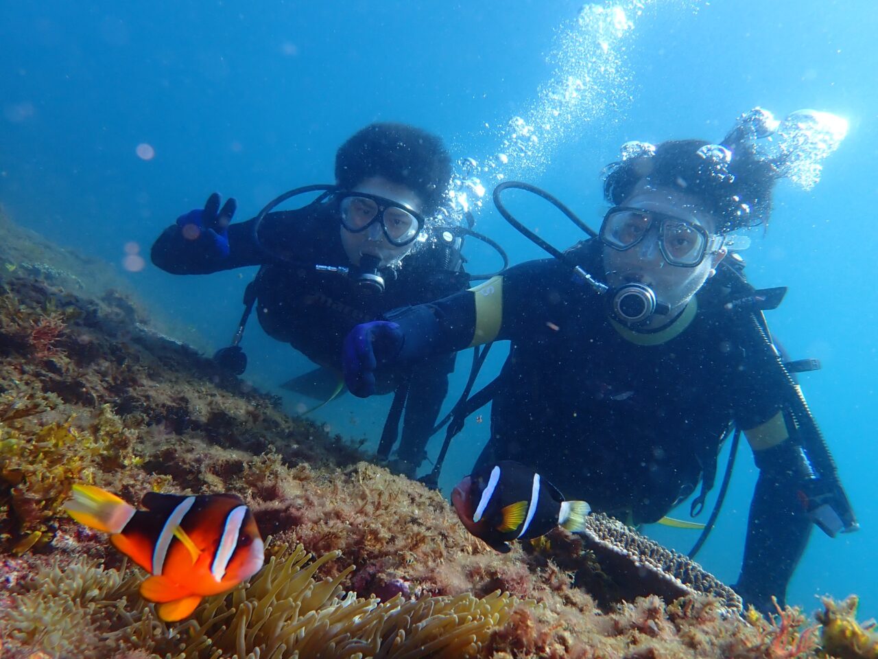 当日の海況によってポイントを選んでいくのですが、秋の浜での体験ダイビングになるとクマノミを見ることができるんです👍