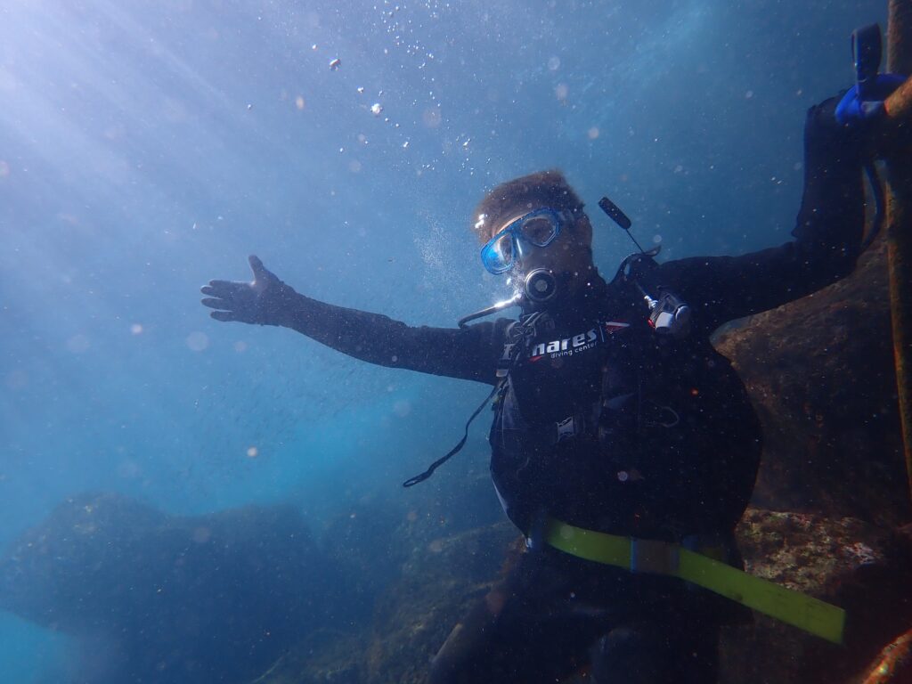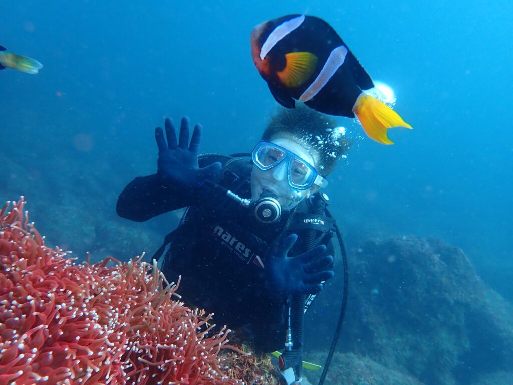 地元のバレーボールチーム繋がりで去年の3月くらいに、島在住なのにダイビングをしたことないと発覚!?