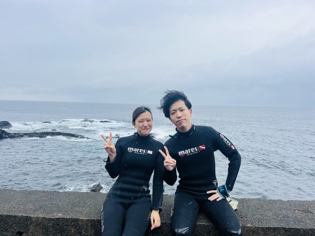 三連休スタートの土曜日!天気はあいにくの雨ですがそれでも元気に「王の浜」にて午前も午後も体験ダイビングをしてきました!